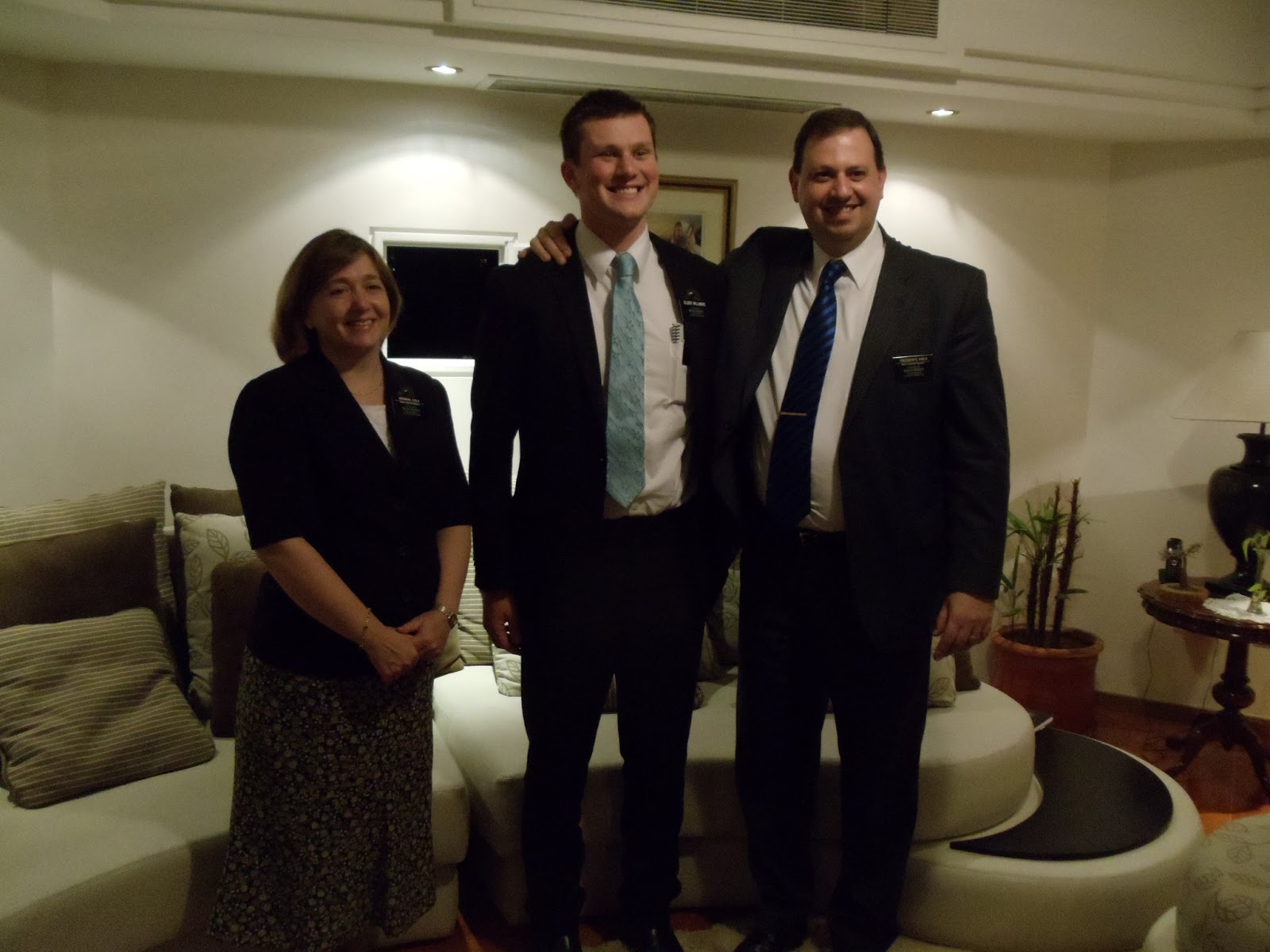 Élder Galdo, Wixom, Moon, Christensen, Fauset, Hermana Julian, Hermana Mamani, Elder Tinoco, Crespo, and Gomez on el Presidente y la Hermana Ávila